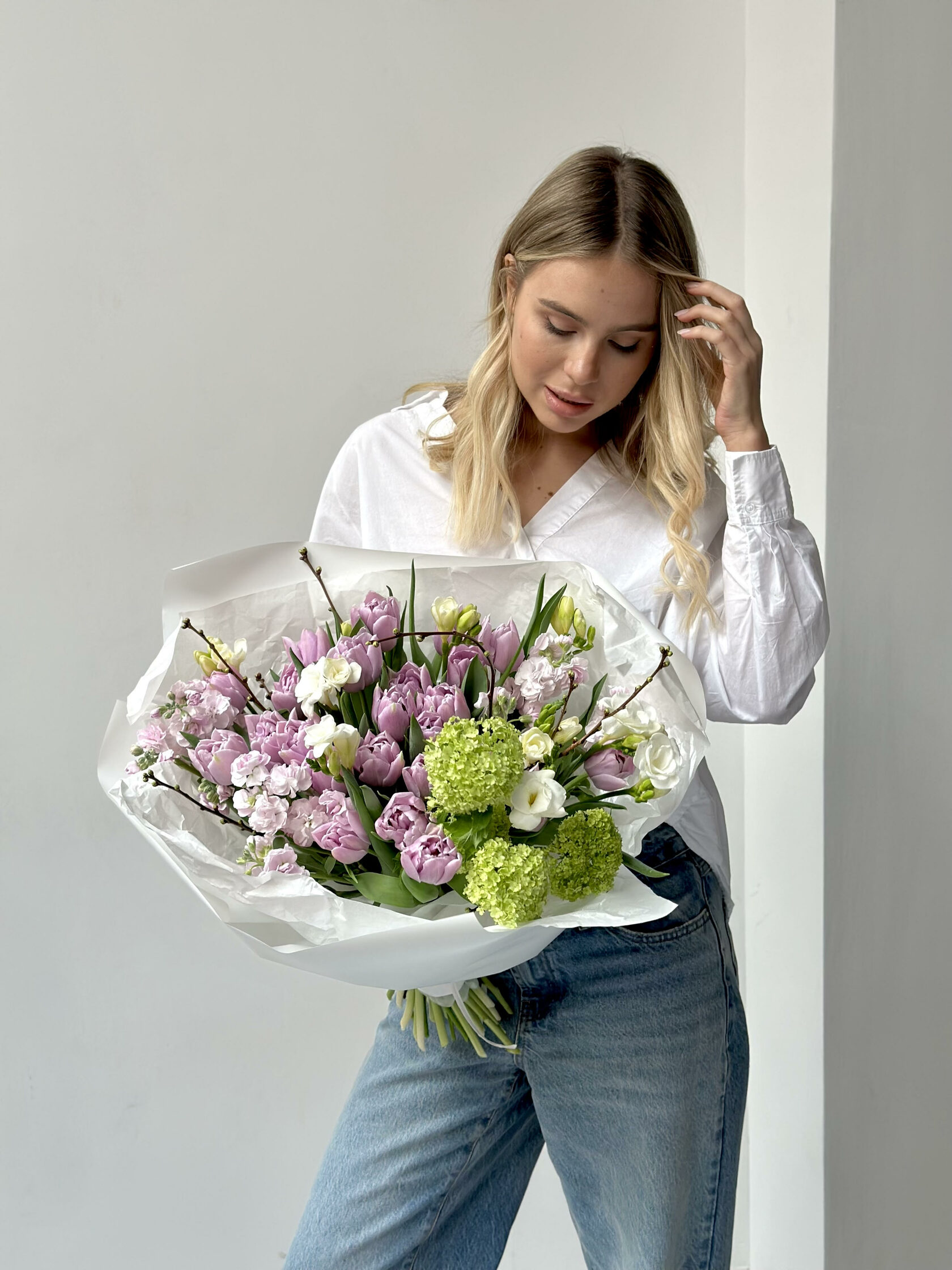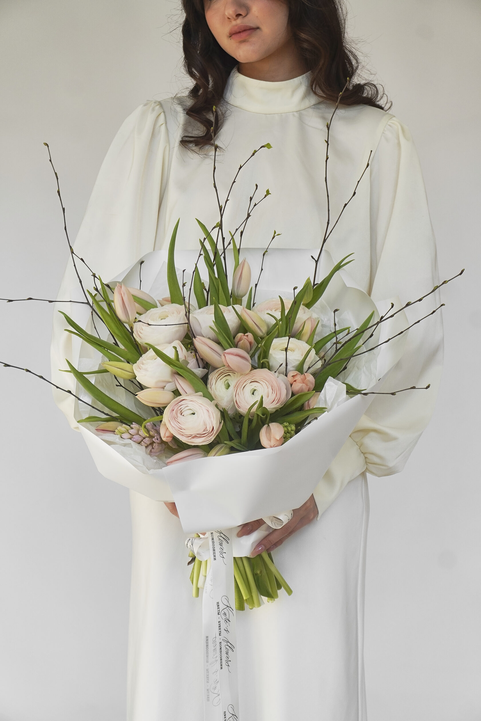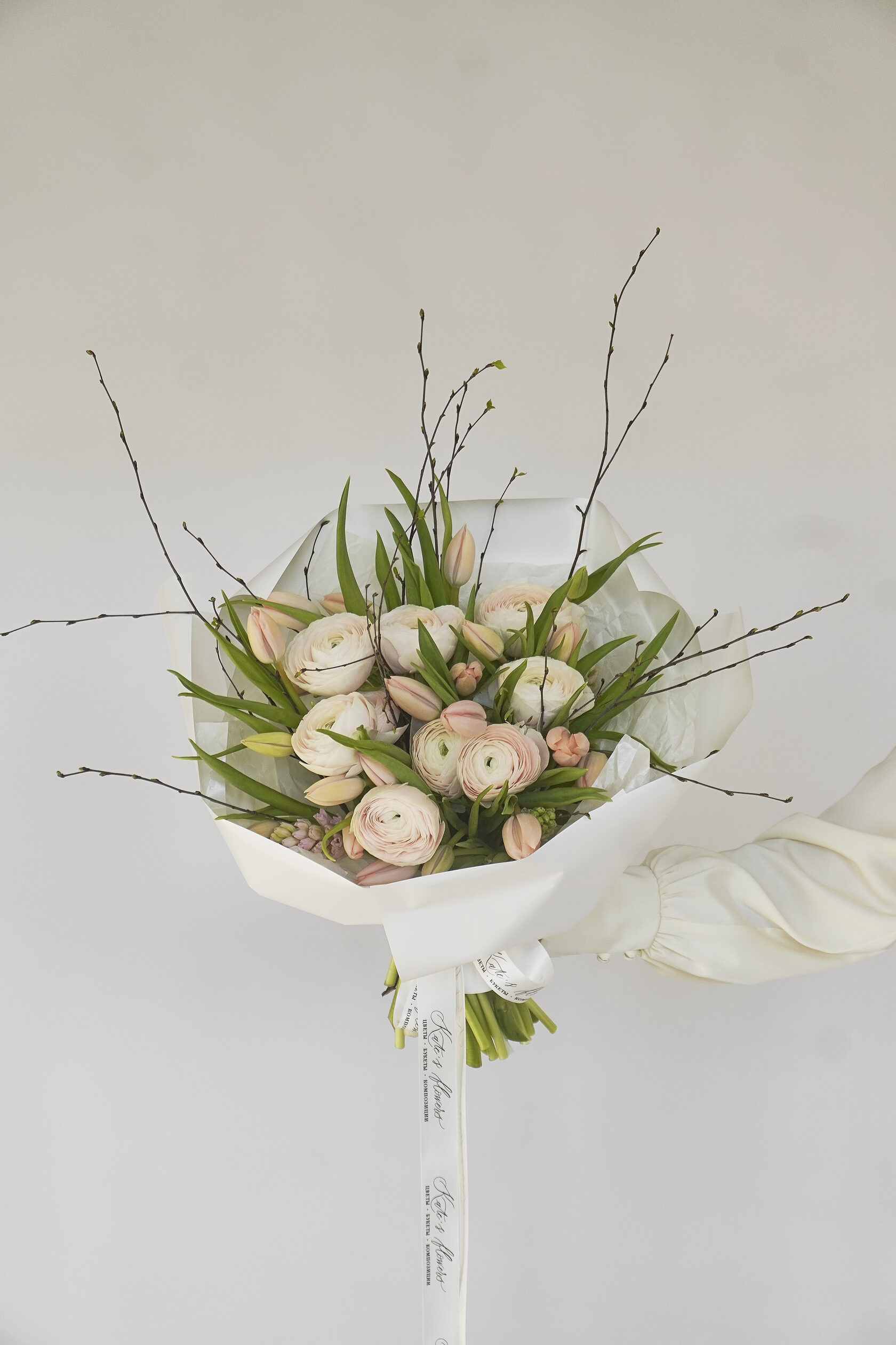 Авторские букеты собираются по предзаказу и состоят минимум из 7 видов цветов. Это эксклюзивные охапки, их создают под индивидуальный запрос, поэтому каждая композиция соответствует образу или характеру получателя.