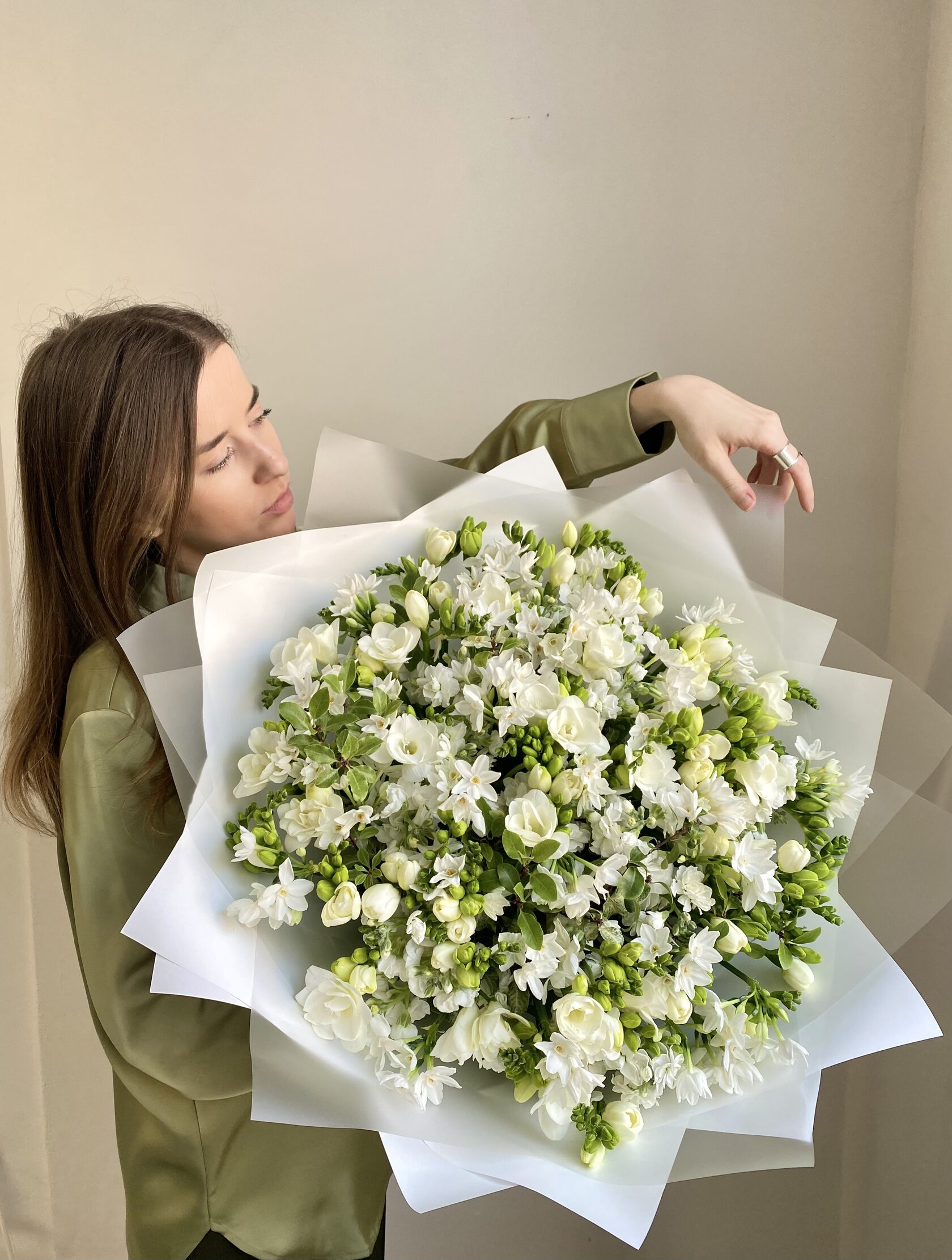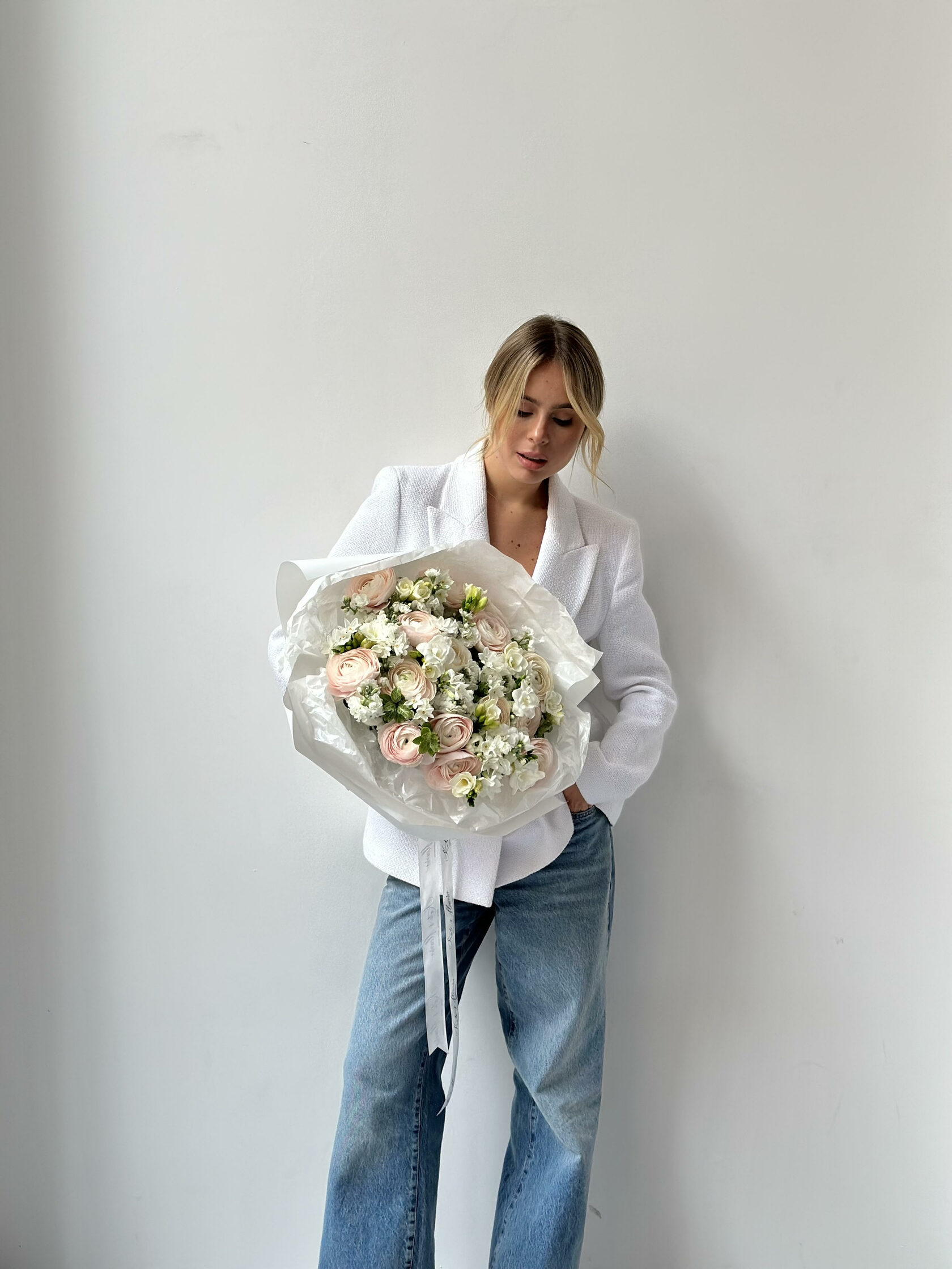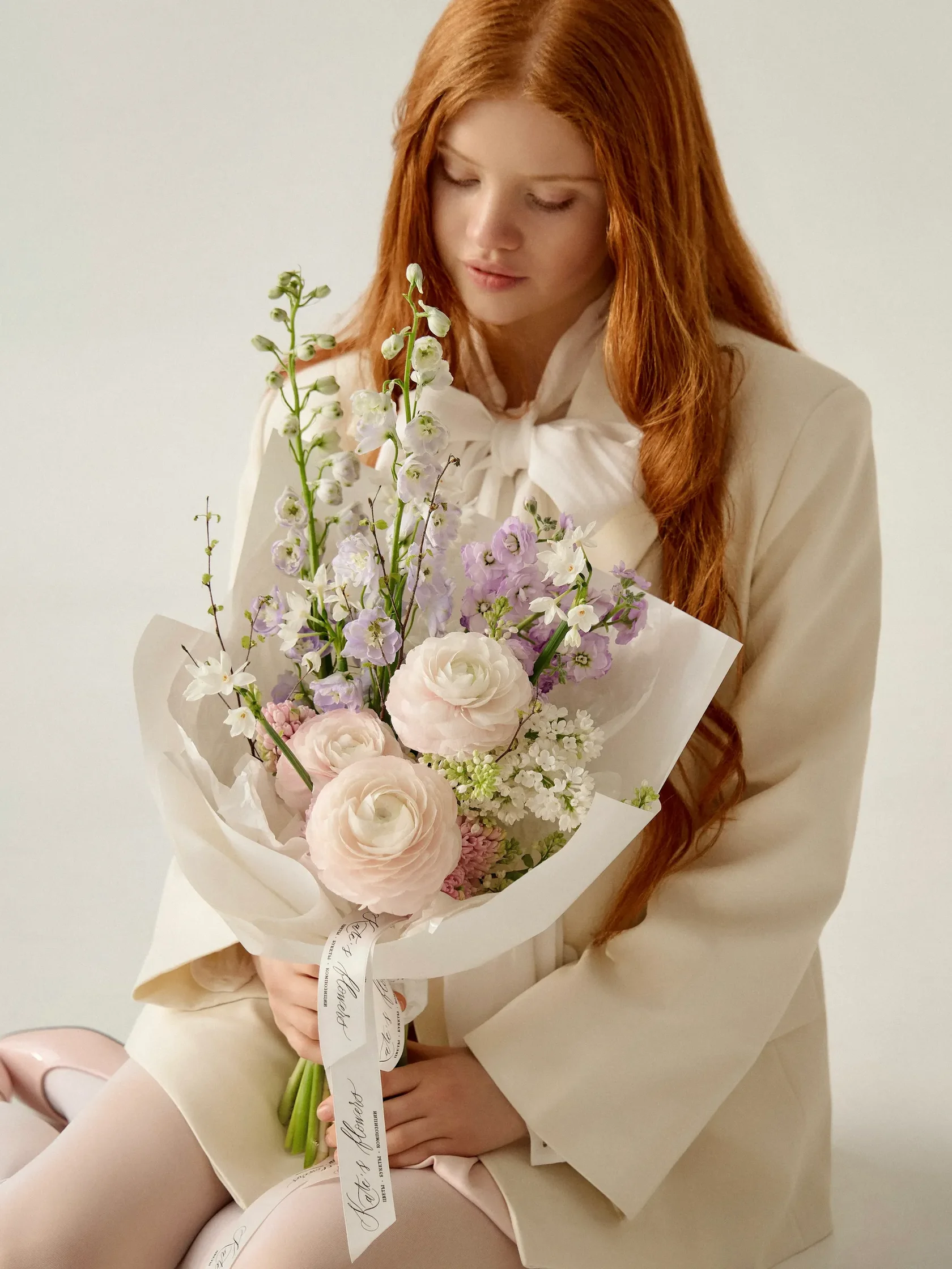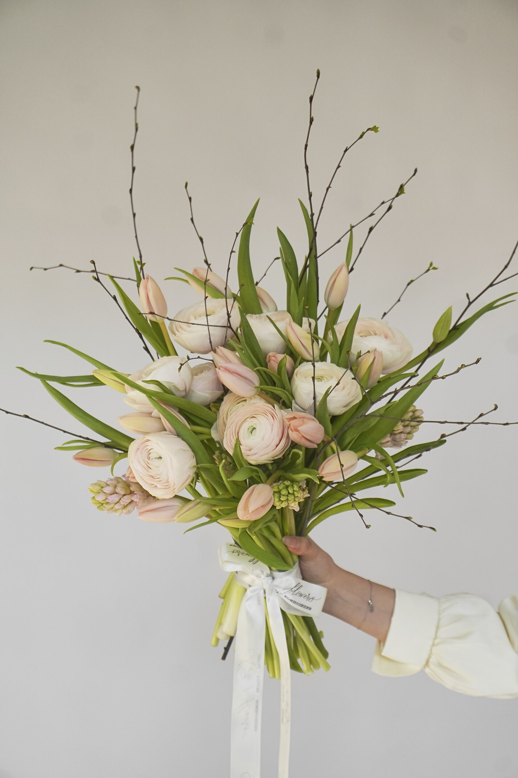Авторские букеты собираются по предзаказу и состоят минимум из 7 видов цветов. Это эксклюзивные охапки, их создают под индивидуальный запрос, поэтому каждая композиция соответствует образу или характеру получателя.