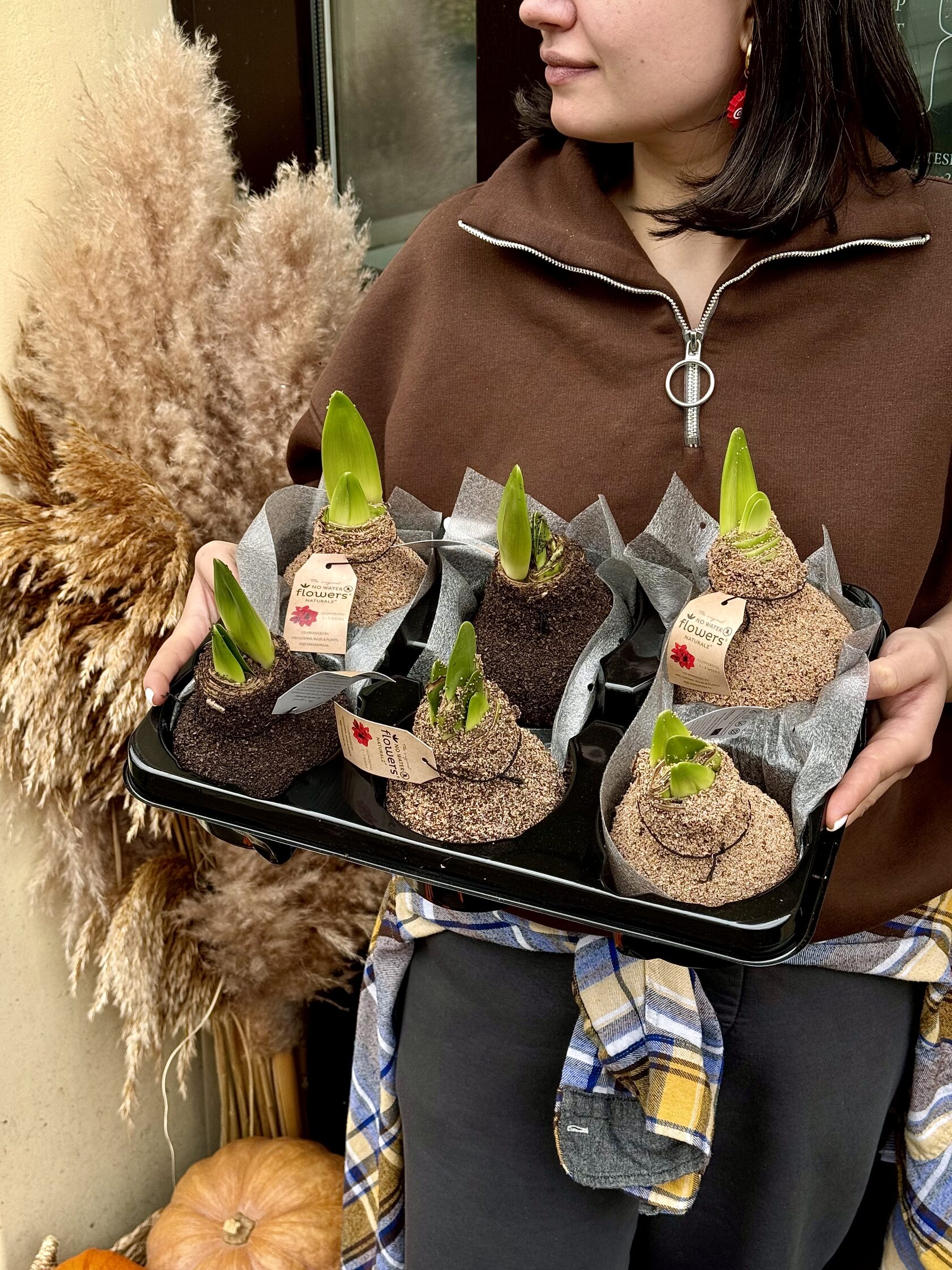 Уникальным подарком станет луковица амариллиса в воске. Данный цветок не требует полива или какого-либо ухода. Срок цветения от 2-х недель. Вы сможете насладиться за природными процессами: рост, роспуск и постепенное увядание. После того, как луковица отцветет, вы можете освободить ее от роспуска и посадить в землю на следующий год. Особенно популярны луковицы в новогоднюю пору, так как они являются отличным подарком для близких.