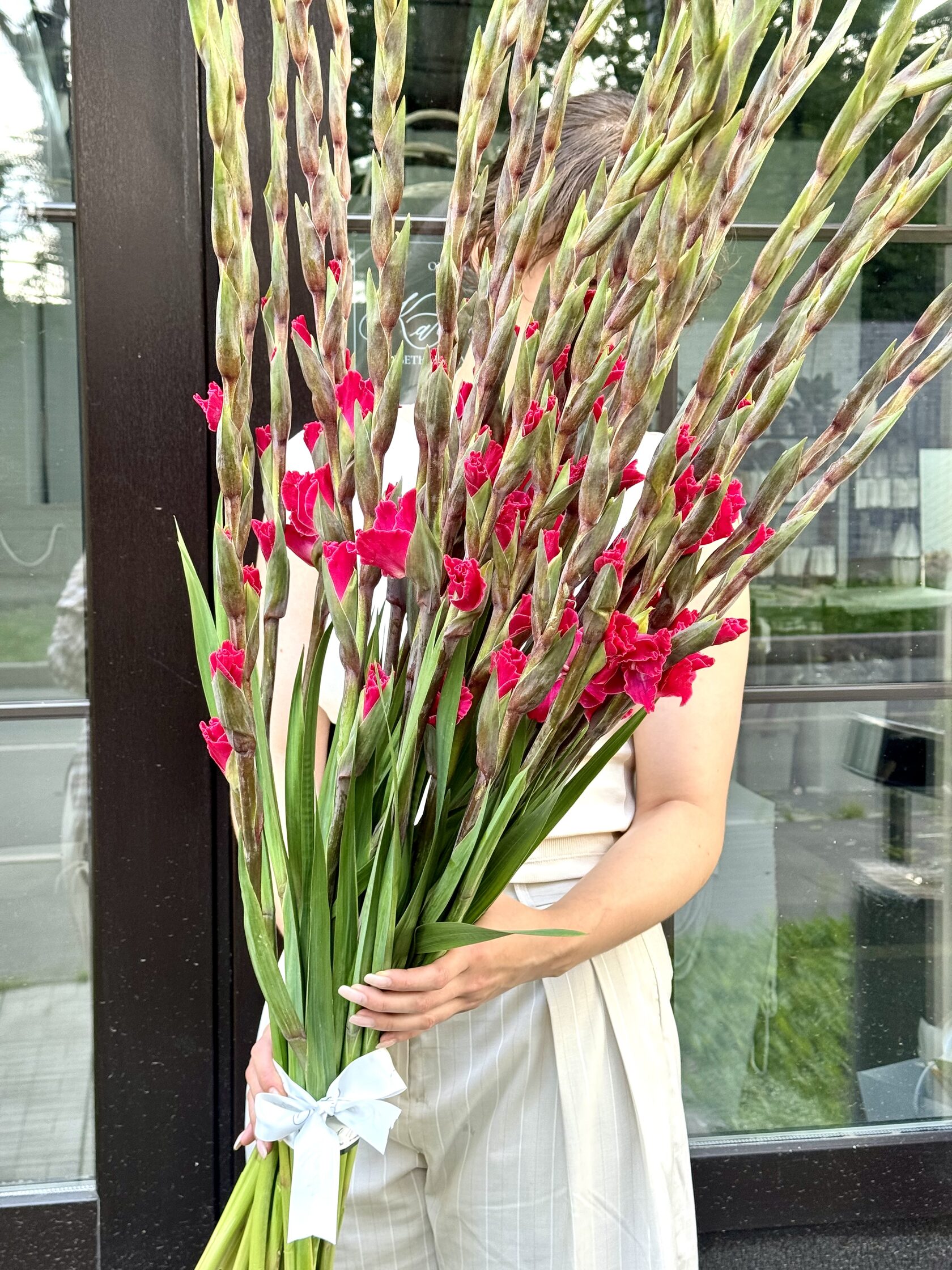 Гладиолусы добавляют в авторские букеты, которые состоят из 7 и более сортов растений. При создании такого цветочного набора флористы учитывают стиль и характер адресата.