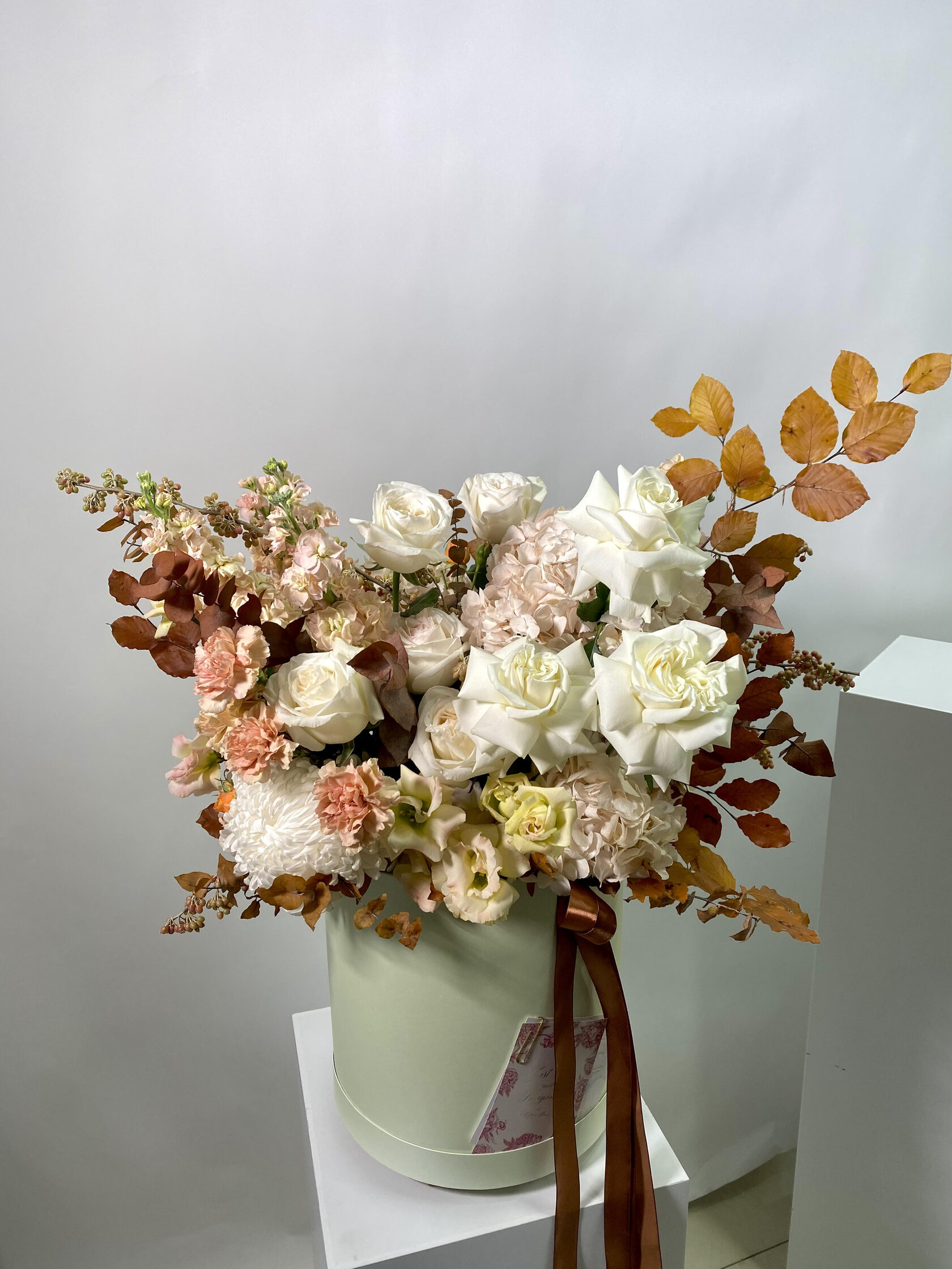 При составлении букета из раздела "Авторский букет" мы ориентируемся на цветовую гамму, форму, стилистику выбранного вами букета/композиции.